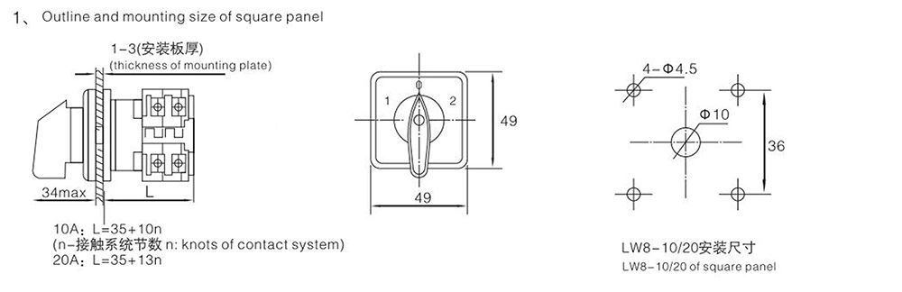 LW8 10A থ্রি পজিশনের রোটারি ক্যাম সুইচ ব্যবহারিকতা, নিরাপত্তা এবং নান্দনিকতাকে একীভূত করে, নিম্নলিখিত বিশিষ্ট বৈশিষ্ট্যগুলির সাথে: