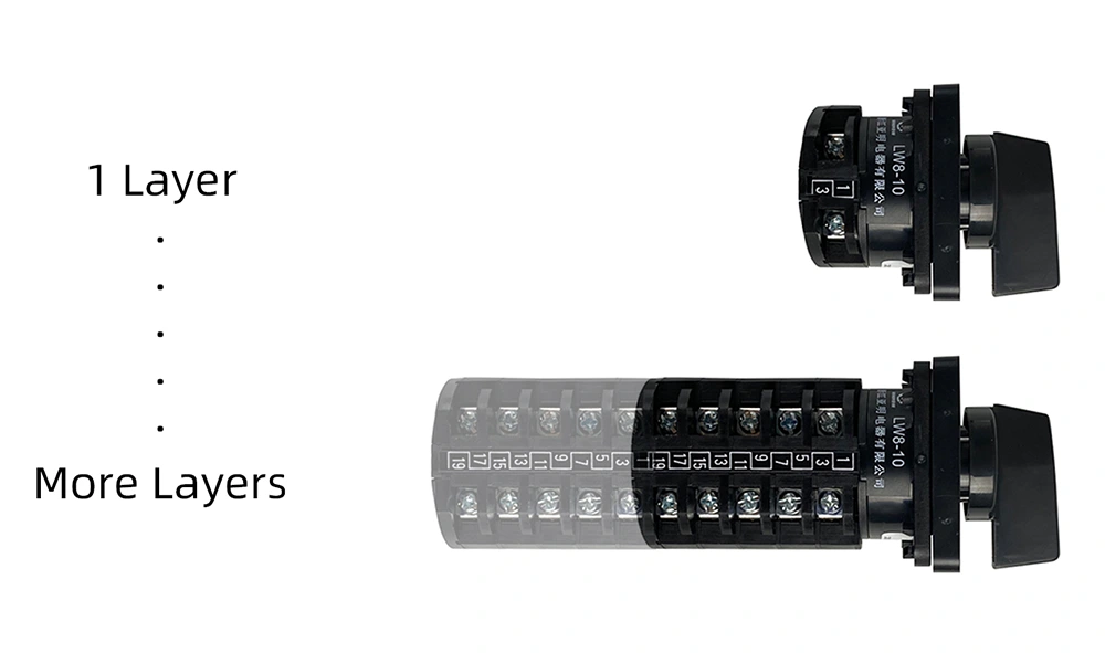 সরাসরি মোটর নিয়ন্ত্রণের জন্য পরিবর্তনের সুইচ: স্ব-লকিং টাইপের 2, 3 বা 4টি বিভাগ রয়েছে।