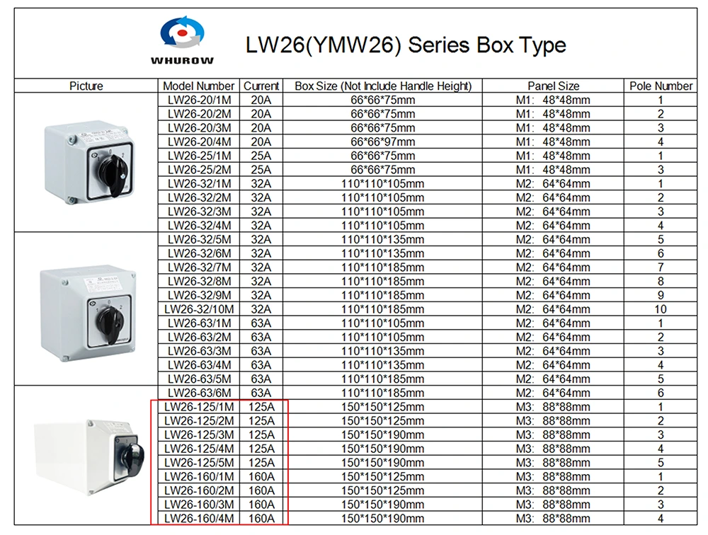 YAMING, বৈদ্যুতিক সুইচ তৈরিতে 30 বছরের বেশি দক্ষতার সাথে একটি পাকা নির্মাতা, একটি জলরোধী ঘের দিয়ে সজ্জিত LW26 125A 160A ওয়াটারপ্রুফ বক্স ক্যাম সুইচ (অভ্যন্তরীণ মডেল: YMW26-125M 160M) উপস্থাপন করে। এটি বিভিন্ন কাজের অবস্থা, বহুমুখী ফাংশন এবং উচ্চ নিরাপত্তা কর্মক্ষমতার সাথে চমৎকার অভিযোজনযোগ্যতা নিয়ে গর্ব করে, এটি সার্কিট নিয়ন্ত্রণ, মোটর নিয়ন্ত্রণ, পরীক্ষার সরঞ্জাম এবং প্রধান নিয়ন্ত্রণ পরিস্থিতিগুলির জন্য একটি আদর্শ পছন্দ করে তোলে।