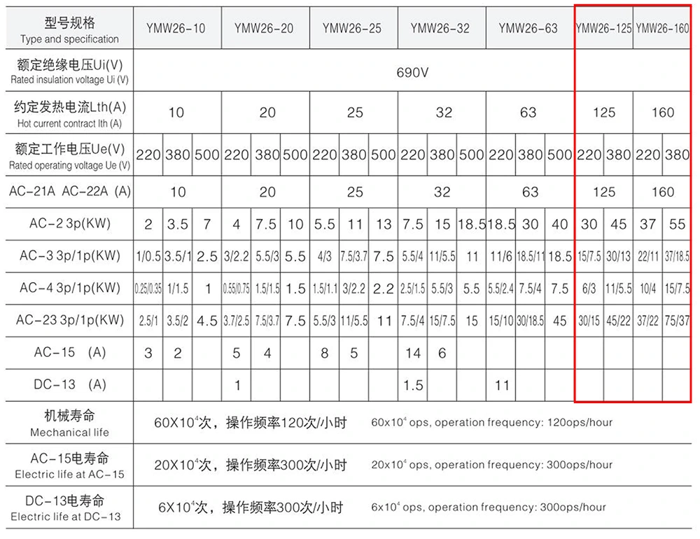 - রেটেড প্যারামিটার: AC 50Hz/690V এবং DC 240V সার্কিটের জন্য উপযুক্ত, যার রেটেড কারেন্ট 125A।