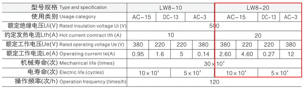 LW8-20 প্যারামিটার কার্ড