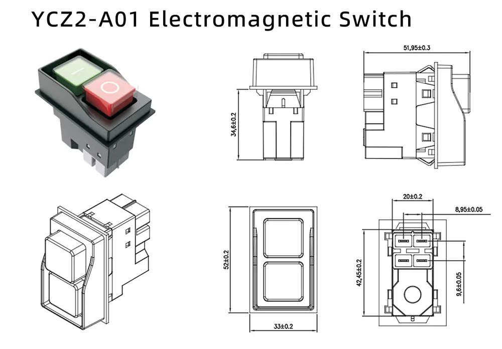 শিল্প নিয়ন্ত্রণের জন্য ডিজাইন করা হয়েছে, আমাদের 8A ছোট পুশ বোতাম ইলেক্ট্রোম্যাগনেটিক সুইচ (অভ্যন্তরীণ মডেল: YCZ2-A01) অপ্রত্যাশিত সরঞ্জামের ক্ষতি রোধ করার জন্য প্রয়োজনীয় পাওয়ার ব্যর্থতা সুরক্ষা এবং আন্ডার-ভোল্টেজ সুরক্ষা বৈশিষ্ট্যযুক্ত। এই মূল সুরক্ষা বৈশিষ্ট্যগুলি থেকে উদ্ভূত, এটি দুটি স্বতন্ত্র অপারেশনাল কনফিগারেশন প্রদান করে: সম্পূর্ণ ডুয়েল-পোল সংযোগ বিচ্ছিন্ন, এবং একক-ক্যাপল-ডাব্লু সংযোগ বিচ্ছিন্ন। একটি তাপ সুরক্ষা সুইচের সাথে মিলিত, এই ডিভাইসটি একটি ইউনিফাইড সলিউশন অফার করে যা একই সাথে আন্ডার-ভোল্টেজ, ওভারলোড এবং অপারেশনাল নিরাপত্তা প্রদান করে, এটি ছোট এসি মোটর নিয়ন্ত্রণ এবং প্রতিরোধী লোড সুইচিংয়ের জন্য আদর্শ করে তোলে।