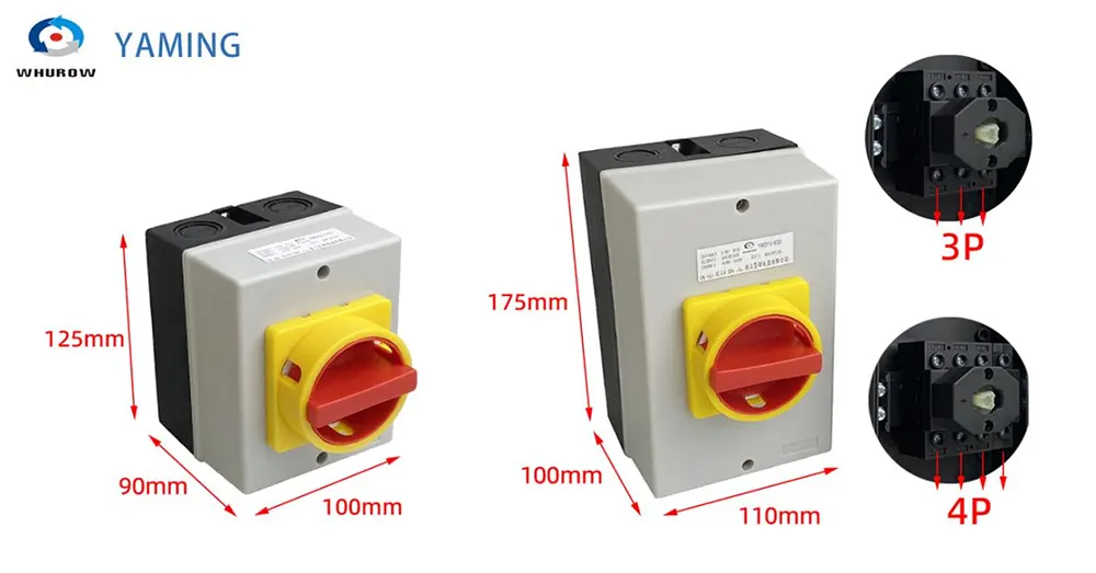 - কমপ্যাক্ট এবং নমনীয় ডিজাইন: ওয়াটারপ্রুফ বক্সের সাথে YMW42 চেঞ্জওভার রোটারি ক্যাম স্যুইচটিতে কম্প্যাক্ট মাত্রা রয়েছে, যা সীমিত ইনস্টলেশন স্পেসেও নমনীয় লেআউটের অনুমতি দেয়, যা সরঞ্জাম ইনস্টলেশন এলাকার ব্যবহারের হারকে ব্যাপকভাবে উন্নত করে।
